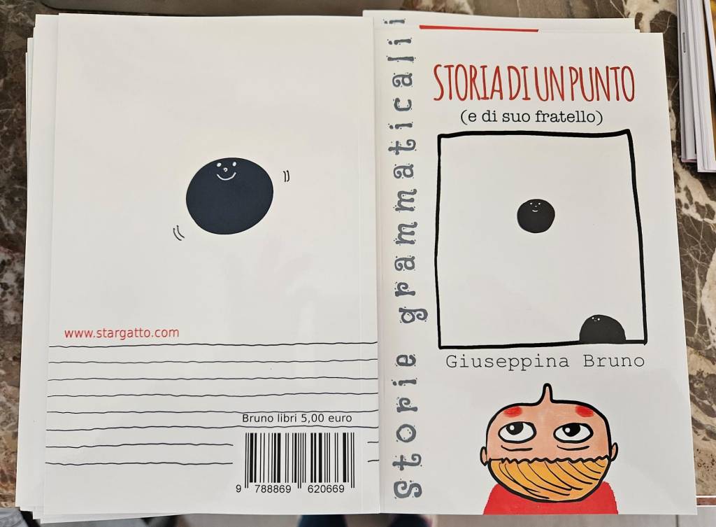 Tra le prime favole che ho scritto, “Storia di un punto” è quella che mi ha appassionato di più per quello stile giocoso, immaginario, astratto con cui mi trovo totalmente a mio agio. Per ripresentare questo racconto ho scelto di adattarlo in una nuova versione, inserendo un racconto nuovo, rivedendo le illustrazioni e inserendolo in una serie di libri che sto preparando di “Storie grammaticali”.