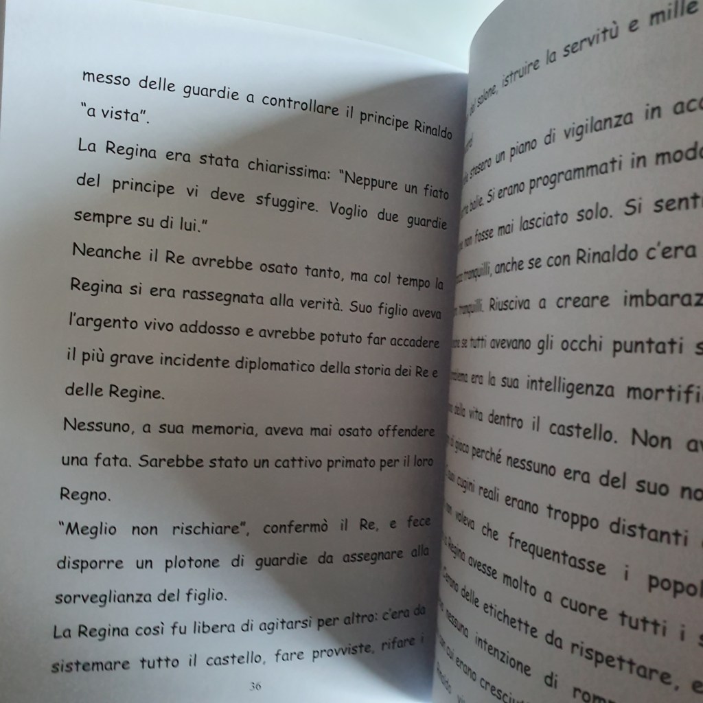 Rinaldo è il figlio tanto desiderato di un Re e di una Regina ormai avanti negli anni. Un bambino molto intelligente ma anche troppo attivo per la coppia reale che presto chiede aiuto ai suoi sudditi per gestire tutta quell’esuberanza. Un giorno nel Regno arriva Azzurrina, una fata che saprà capire il bambino e con quella magia speciale che è solo delle fate buone, riportare ordine nel Regno e tanta serenità per il bambino. Con illustrazioni a colori per ogni capitolo e carattere facilitato per aiutare le prime letture in stampatello minuscolo.
