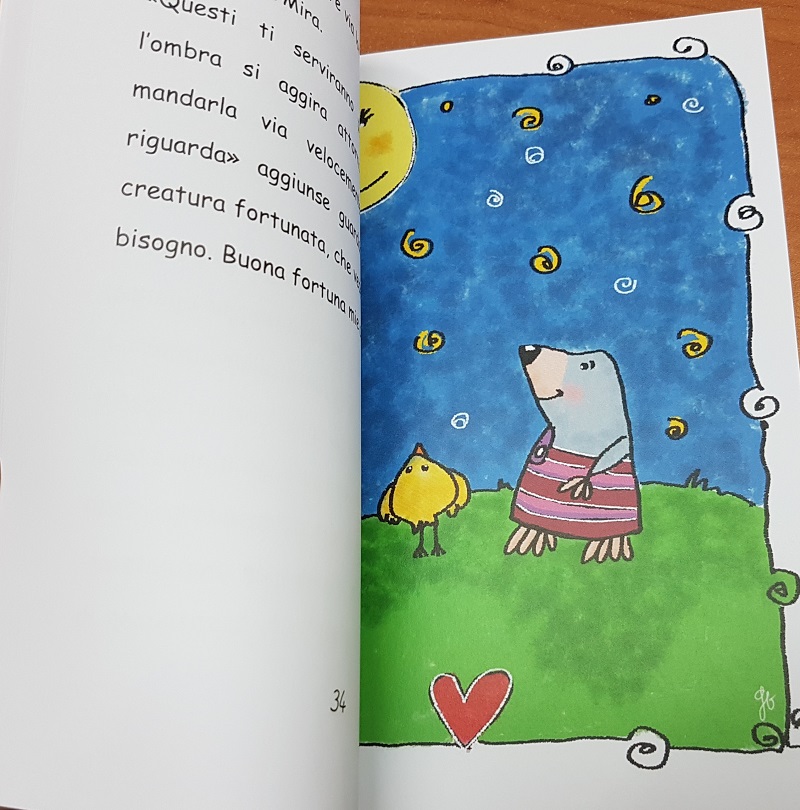 Quando ho scritto questa favola, ridevo. Ricordo il calore della stufa, la musica che stavo ascoltando e le immagini buffe che mi apparivano nella scrittura di questo libro. E’ stato il primo libro che ho disegnato perchè non avevo più fondi da destinare per questo progetto. Alla fine è talmente piaciuto che ho continuato a farlo, permettendomi di poter pubblicare sempre di più. Negli anni ho scoperto che i miei lettori di favole preferiscono i libri disegnati da me perchè riesco a caratterizzare meglio la mia scrittura.